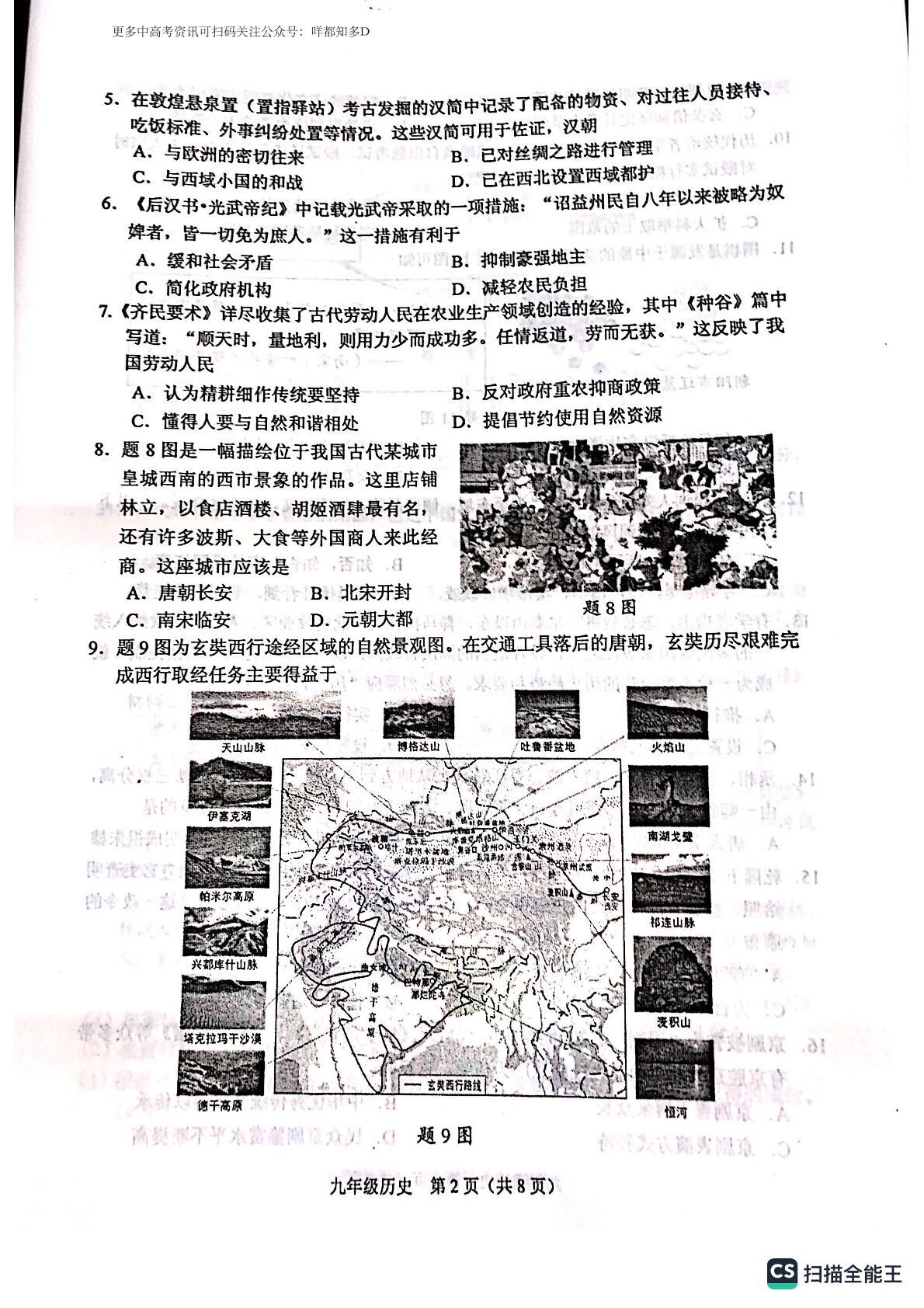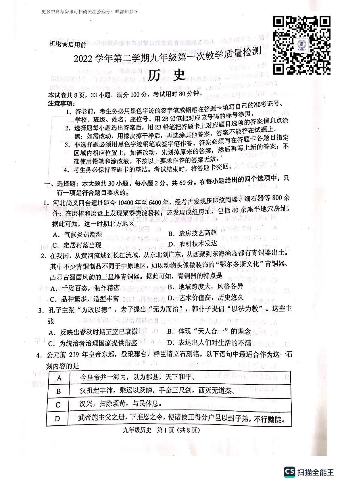 2023年广东省佛山市顺德区&高明区·中考一模【历史】