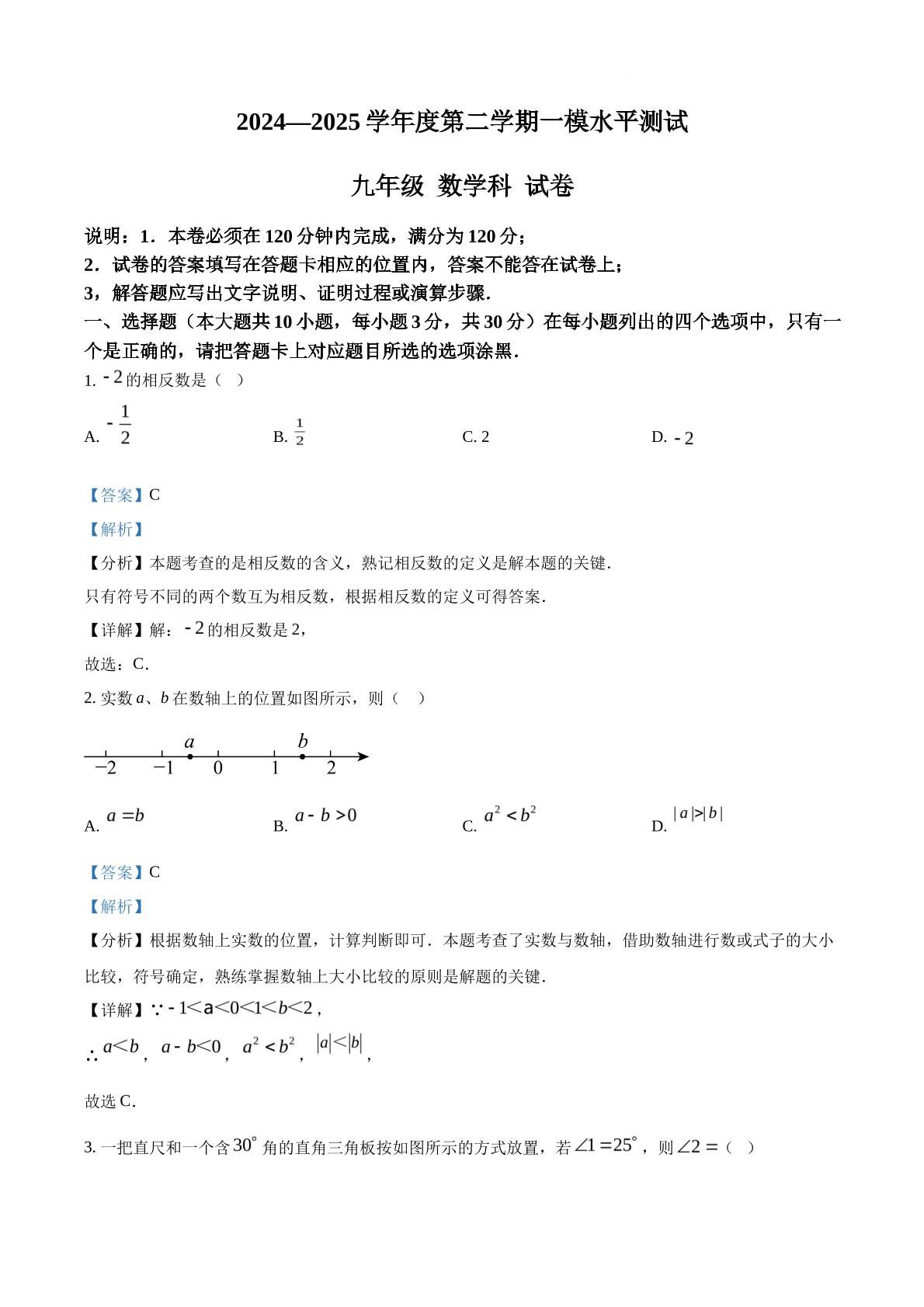 2025年广东省肇庆市中考一模数学试题(解析版)