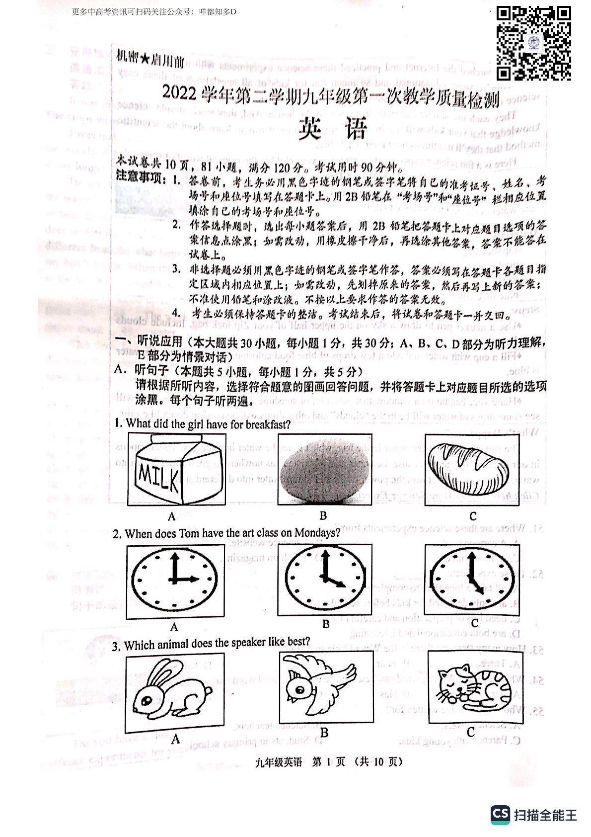 2023年广东省佛山市顺德区&高明区·中考一模【英语】