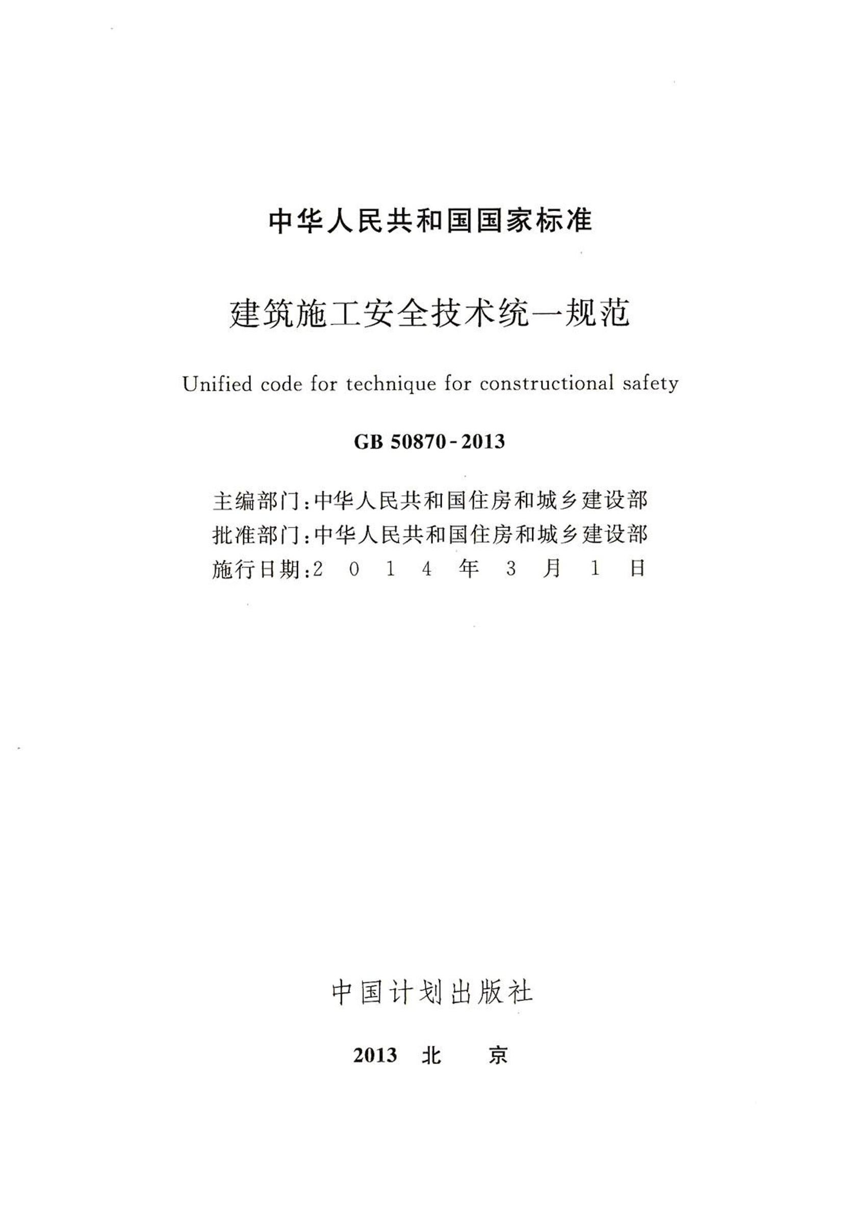GB 50870-2013 建筑施工安全技术统一规范