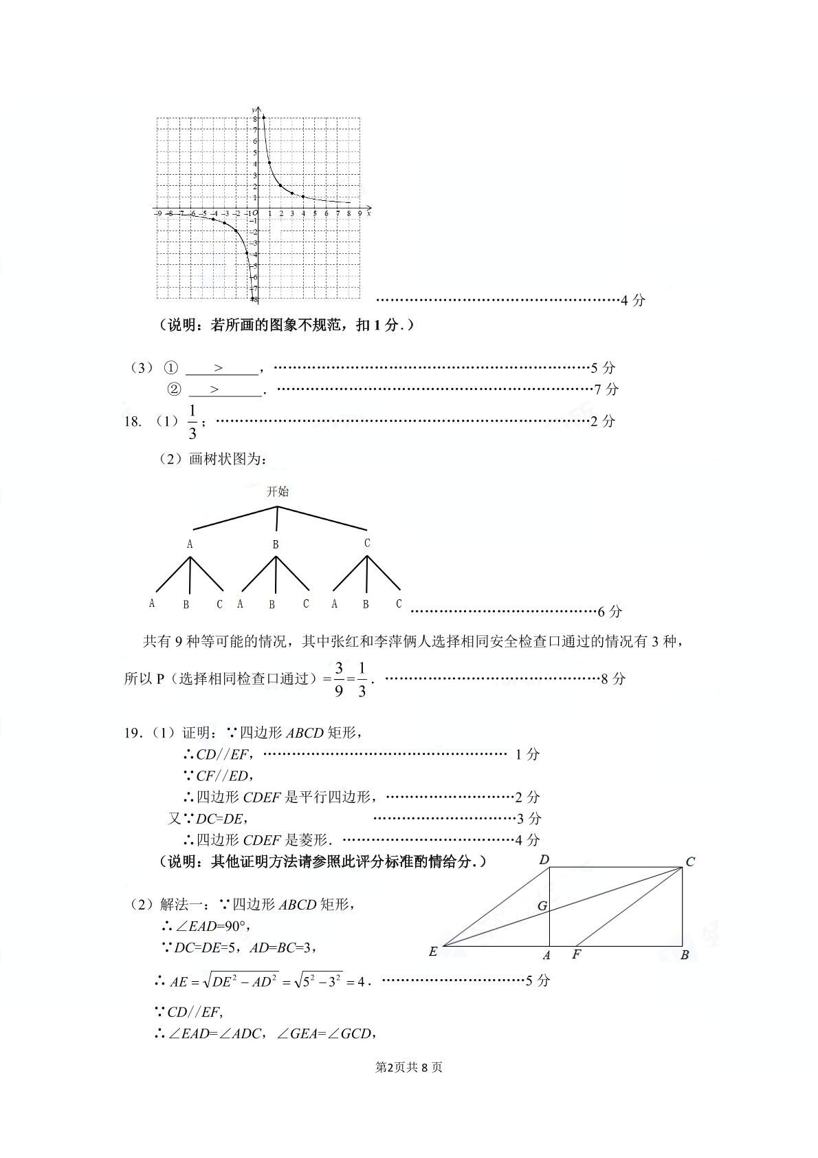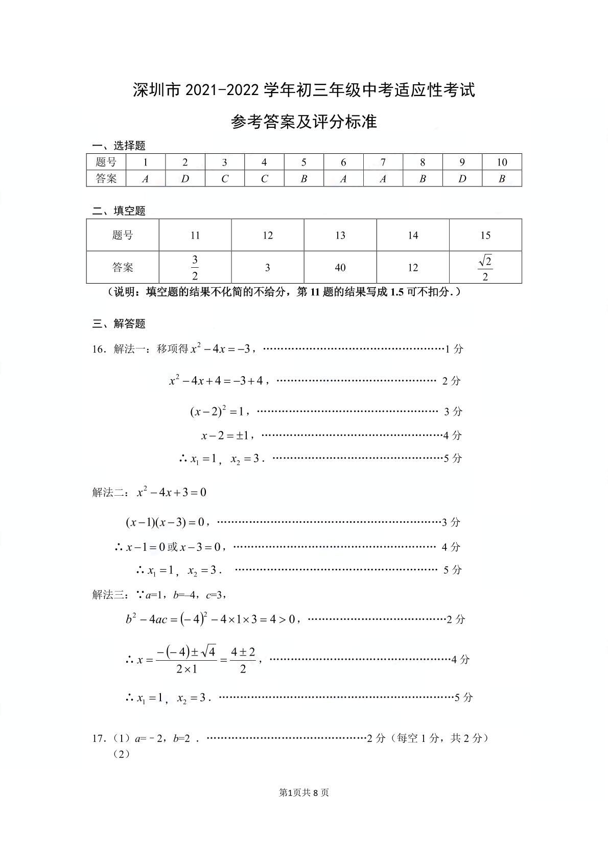2021-2022学年深圳市初三中考适应性考试数学参考答案