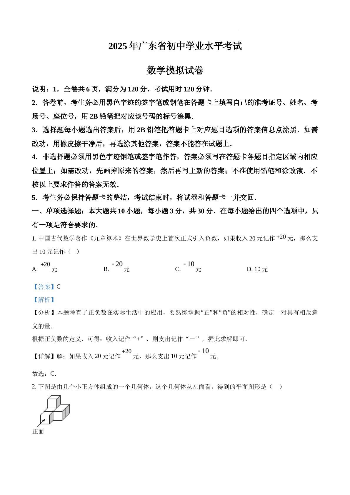 2025年广东省汕头市潮南区司马浦公校九年级中考一模数学试题(解析版)