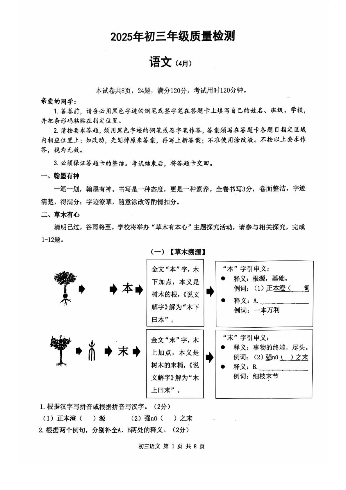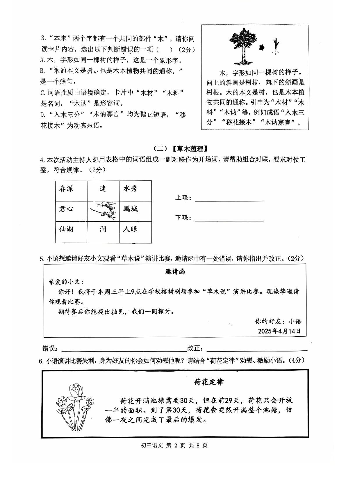 2025年4月深圳市多校初三质量检测语文试卷