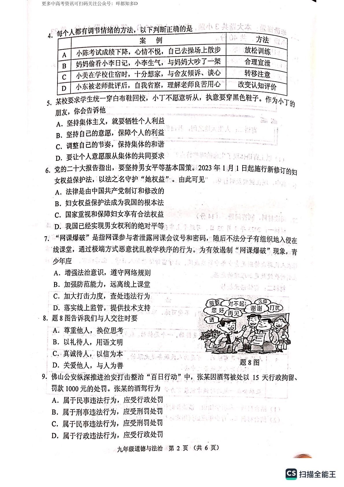 2023年广东省佛山市顺德区&高明区·中考一模【政治】