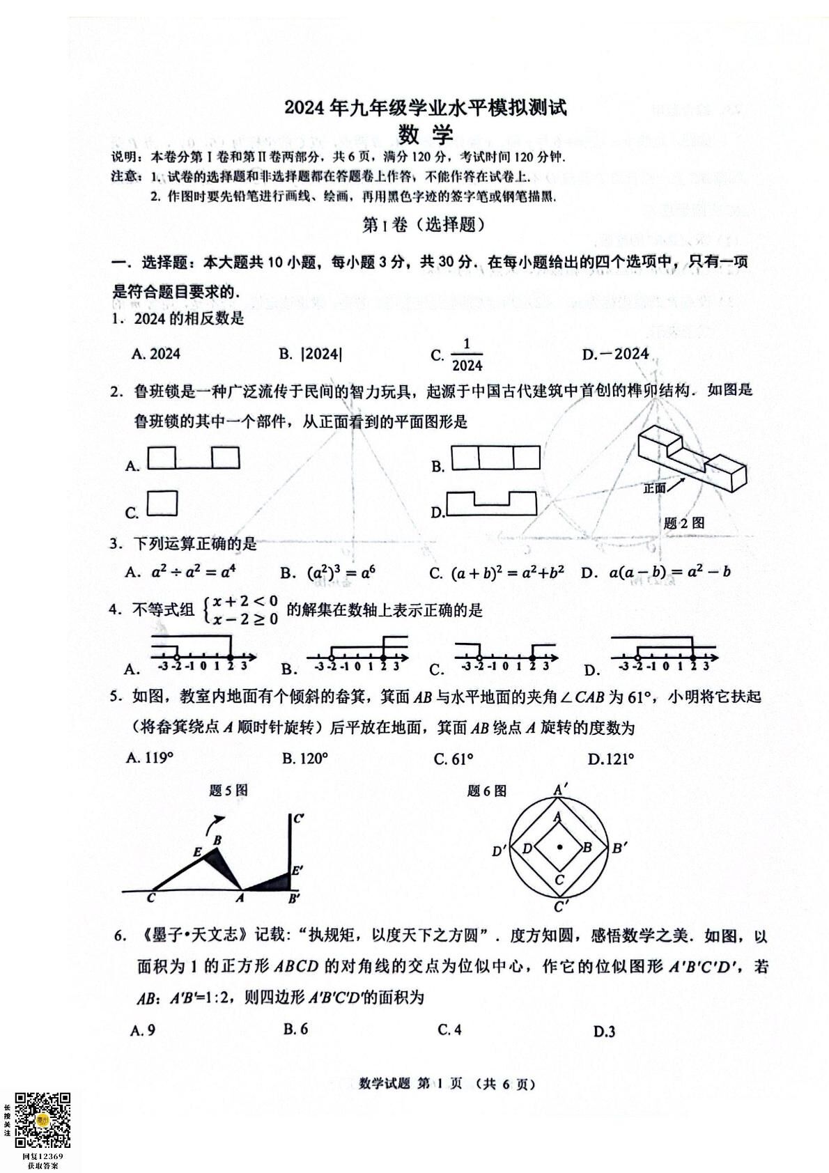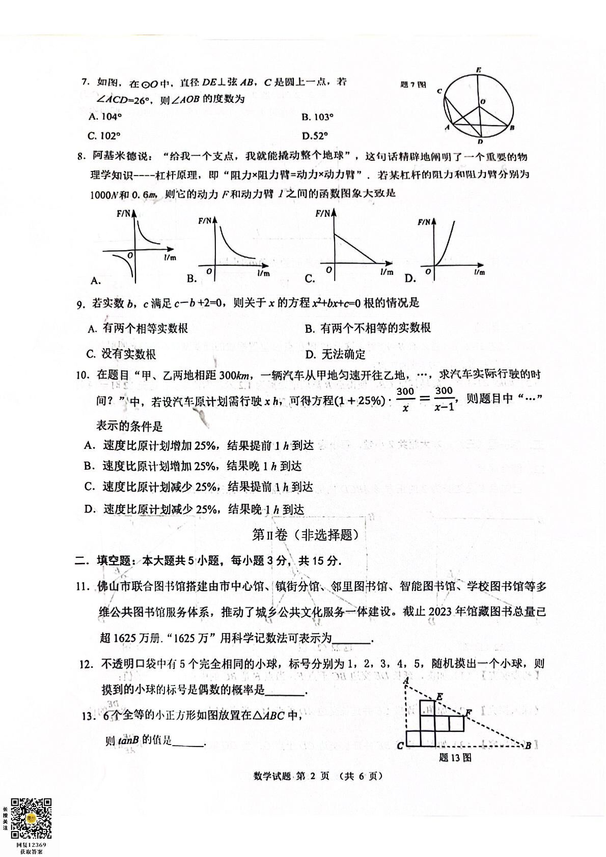 02数学 2024届佛山中考·禅城区·中考二模·【24年5月】