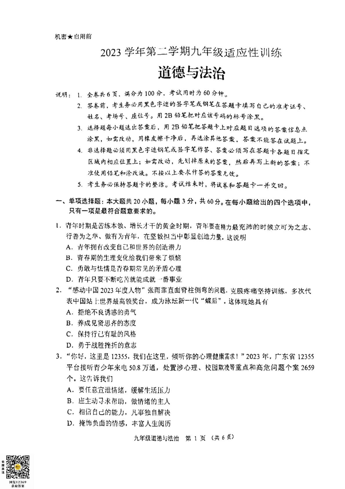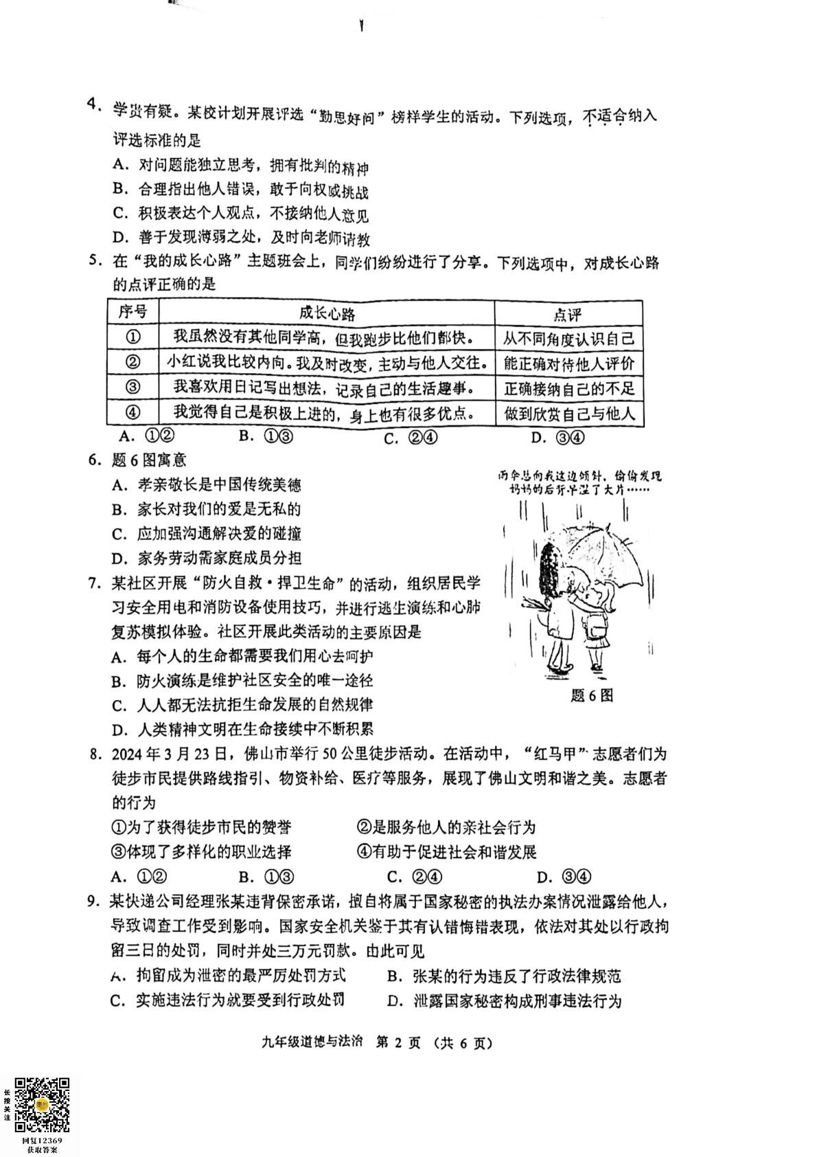 06政治 2024届佛山中考·顺德区·中考二模·【24年5月】